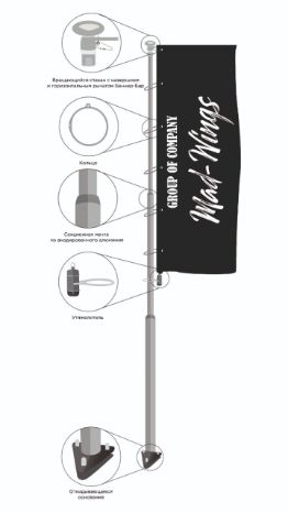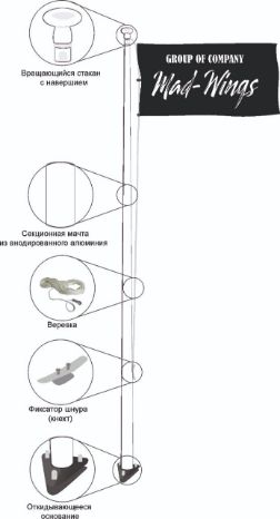 Флагшток из алюминия с не опускаемым плечом для флага.