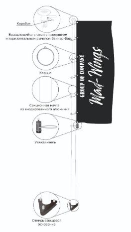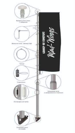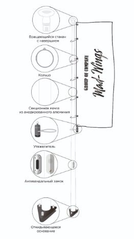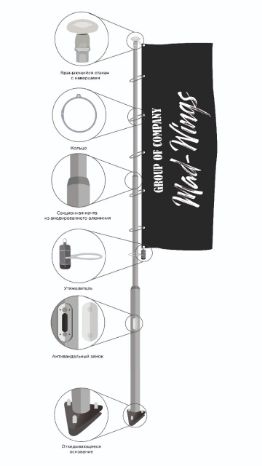 Флагшток из стекловолокна с опускаемым баннерным плечом и закрытым механизмом.